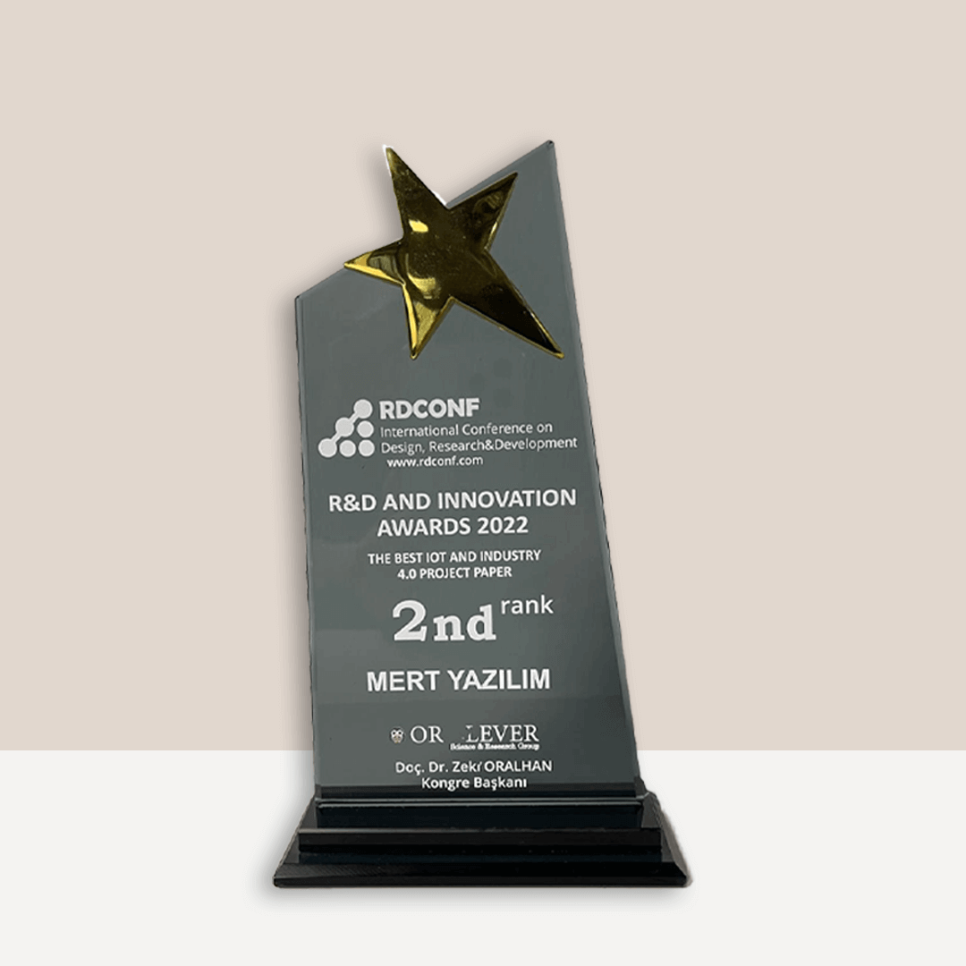“Üretimde Kullanılan Akıllı Olmayan El Cihazlarının Endüstri 4.0’a Uyumlu Hale Getirilmesi İçin Yeni Bir Sistem Tasarımı” başlıklı ulusal bildirimiz ile Uluslararası Araştırma Geliştirme ve Tasarım Konferansında (RDCONF2022) “En İyi IoT ve Endüstri 4.0 Projesi” kategorisinde 2.’lik ödülünü kazandık.