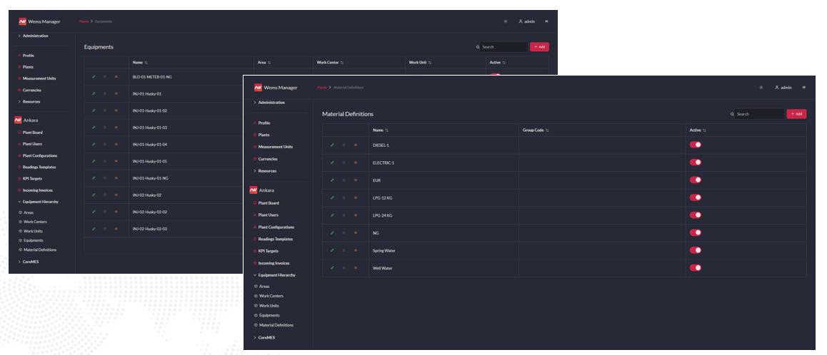 - Müşteriye özel entegrasyonlar ile üretim/depo yönetimi sistemlerinden üretim miktarlarının alınması ve üretim/enerji KPI hesaplayabilme